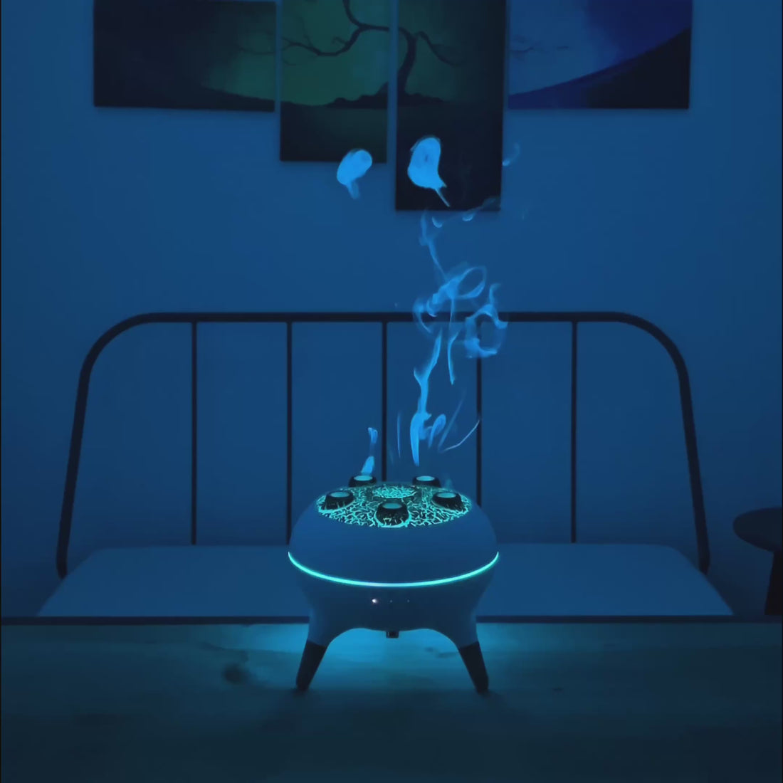-“Jelly” mode: The blades rotate rhythmically, releasing gentle puffs of vapor that resemble floating jellyfish.